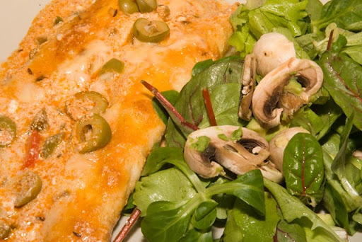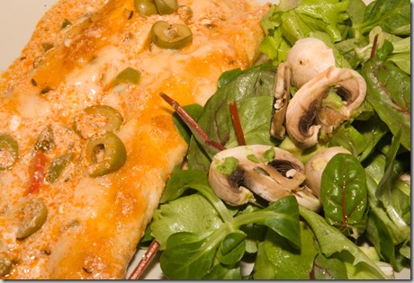 Häll såsen över rullarna, strö över lite mer riven ost och kanske lite oliver. Grädda i 250 grader 15 minuter.