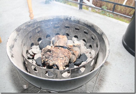 Det finns olika metoder att tända Bulleten beroende på hur länge man ska hålla på med rökningen, som alltid finns det tips och tricks och små filmer på Virtual Weber Bullet som beskriver hur man gör. Jag älskar det. Chris är fantastiskt ambitiös, jag kan surfa runt hur länge som helst på TVWB och kolla på de små filmerna när han monterar sin Bullet, styckar kyckling, väljer köttbitar, trancherar en kalkon. Underbart.